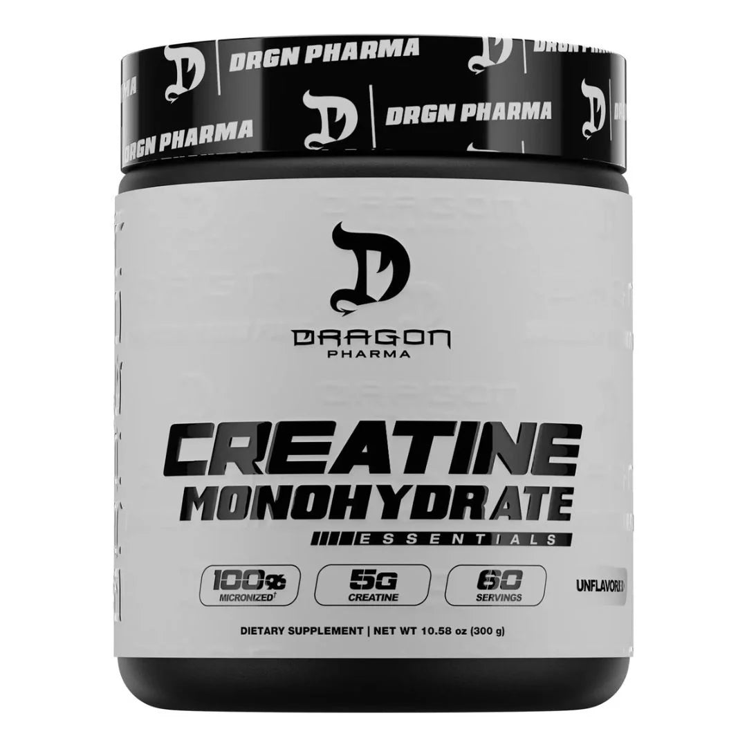 Es una creatina monohidratada micronizada 100% pura, en polvo, de la marca Dragon Pharma. Cada servicio aporta 5 g de creatina, sin sabor, sin azúcar y sin estimulantes.