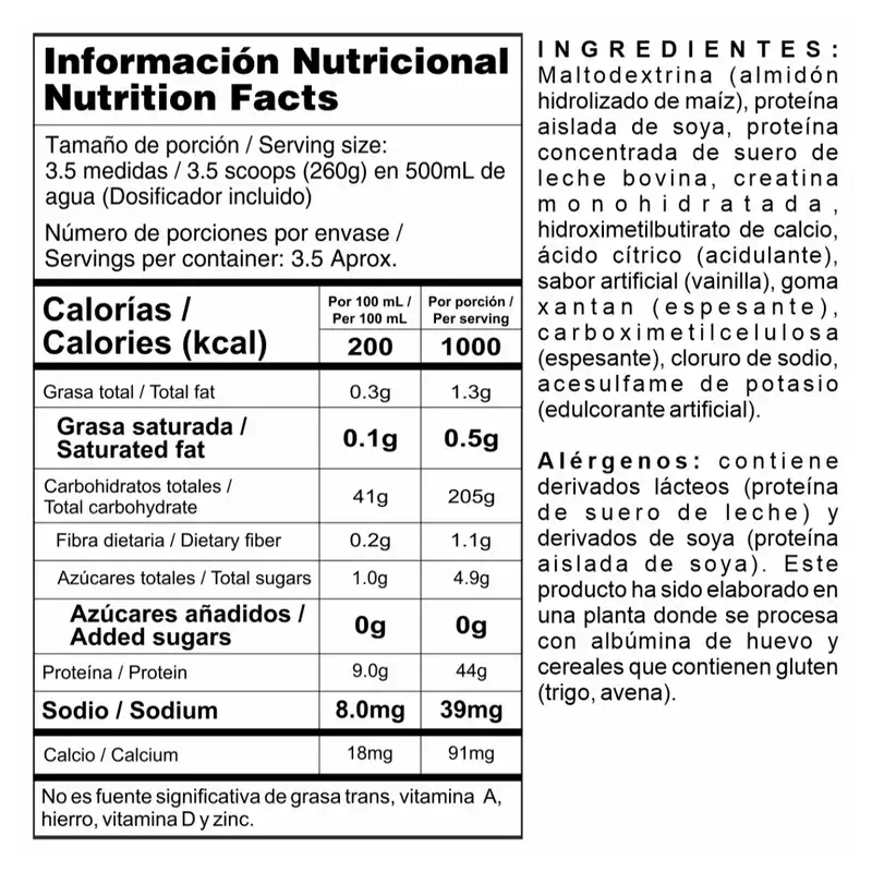 Es decir: proteína + calorías + creatina en un solo batido.