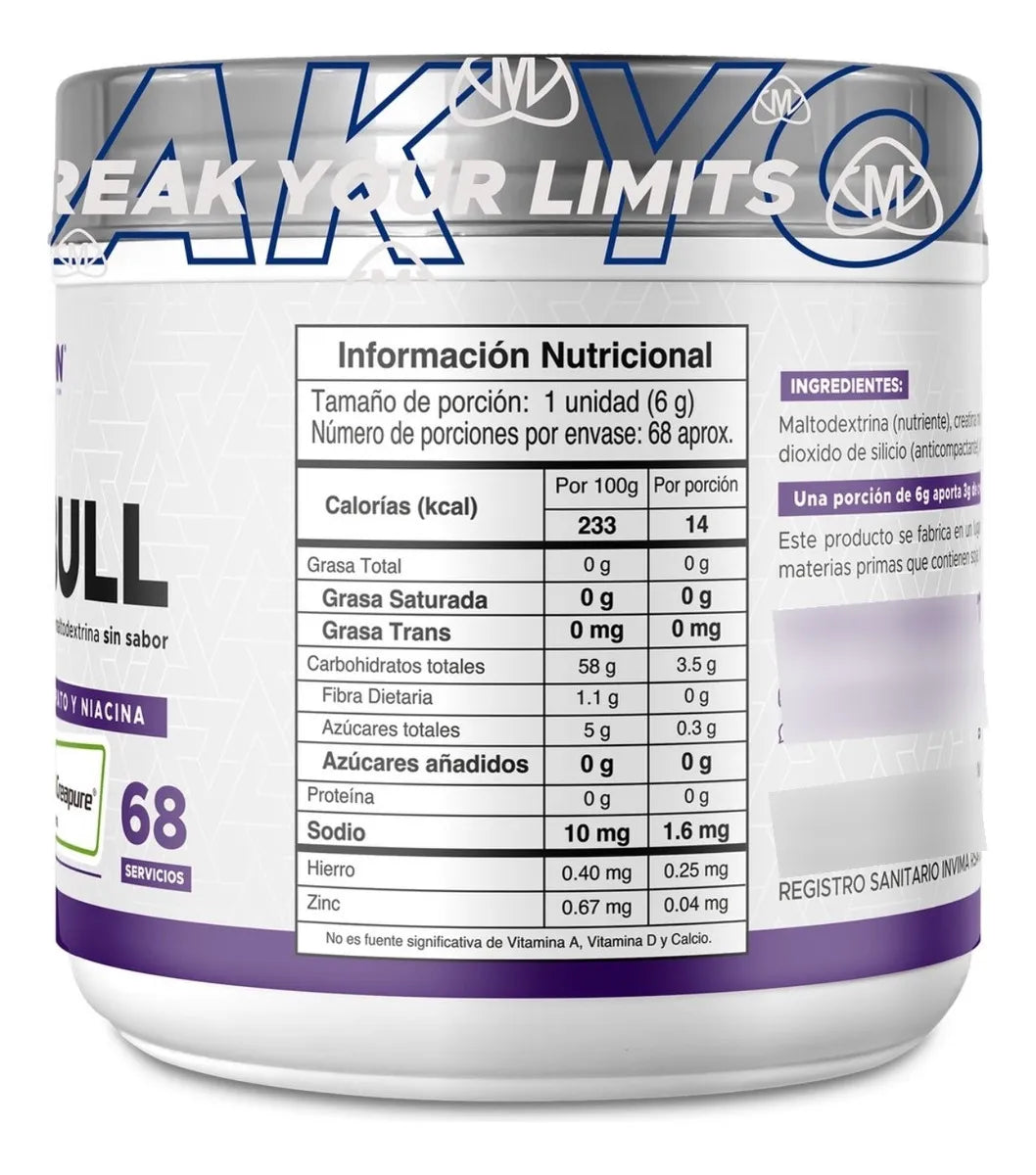 Es un suplemento en polvo que combina maltodextrina, creatina monohidratada Creapure® y vitamina B3, diseñado para mejorar fuerza, energía, rendimiento y recuperación muscular en entrenamientos intensos.